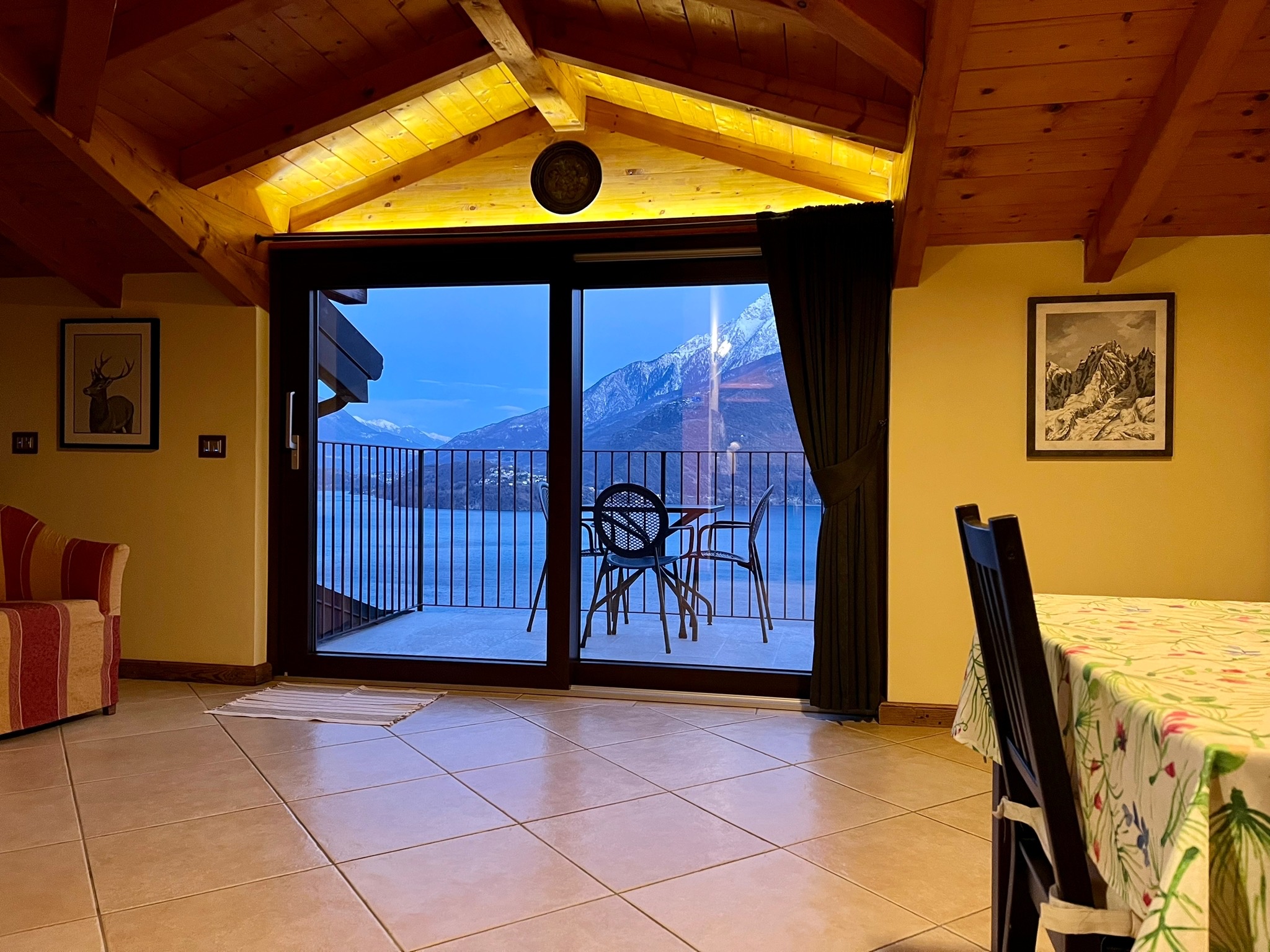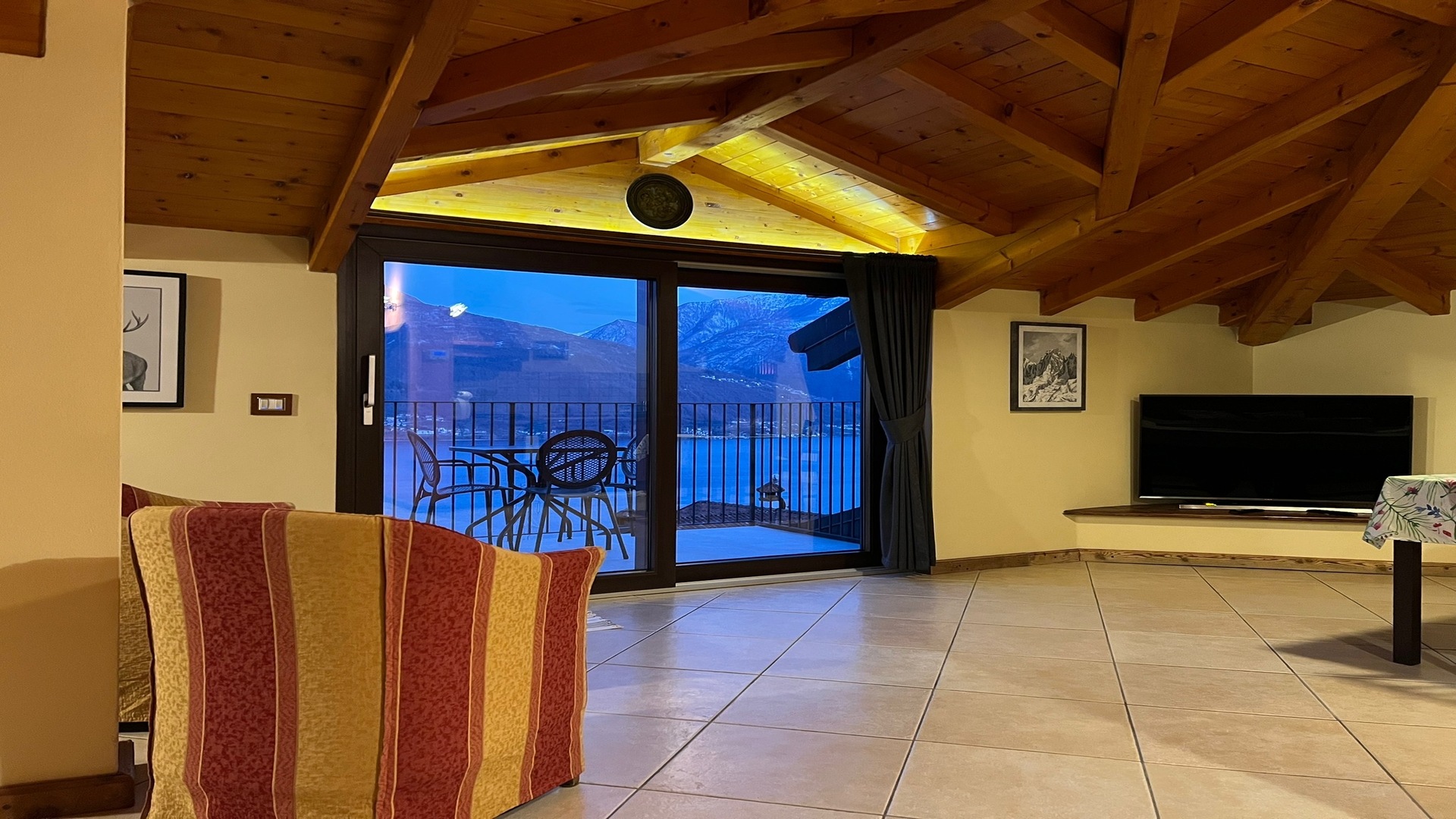 Appartamento elegante e spazioso situato sopra a Musso, in posizione tranquilla, dotato di una vista meravigliosa. Il soggiorno con divano letto , la zona pranzo con cucina aperta sono fronte lago.
